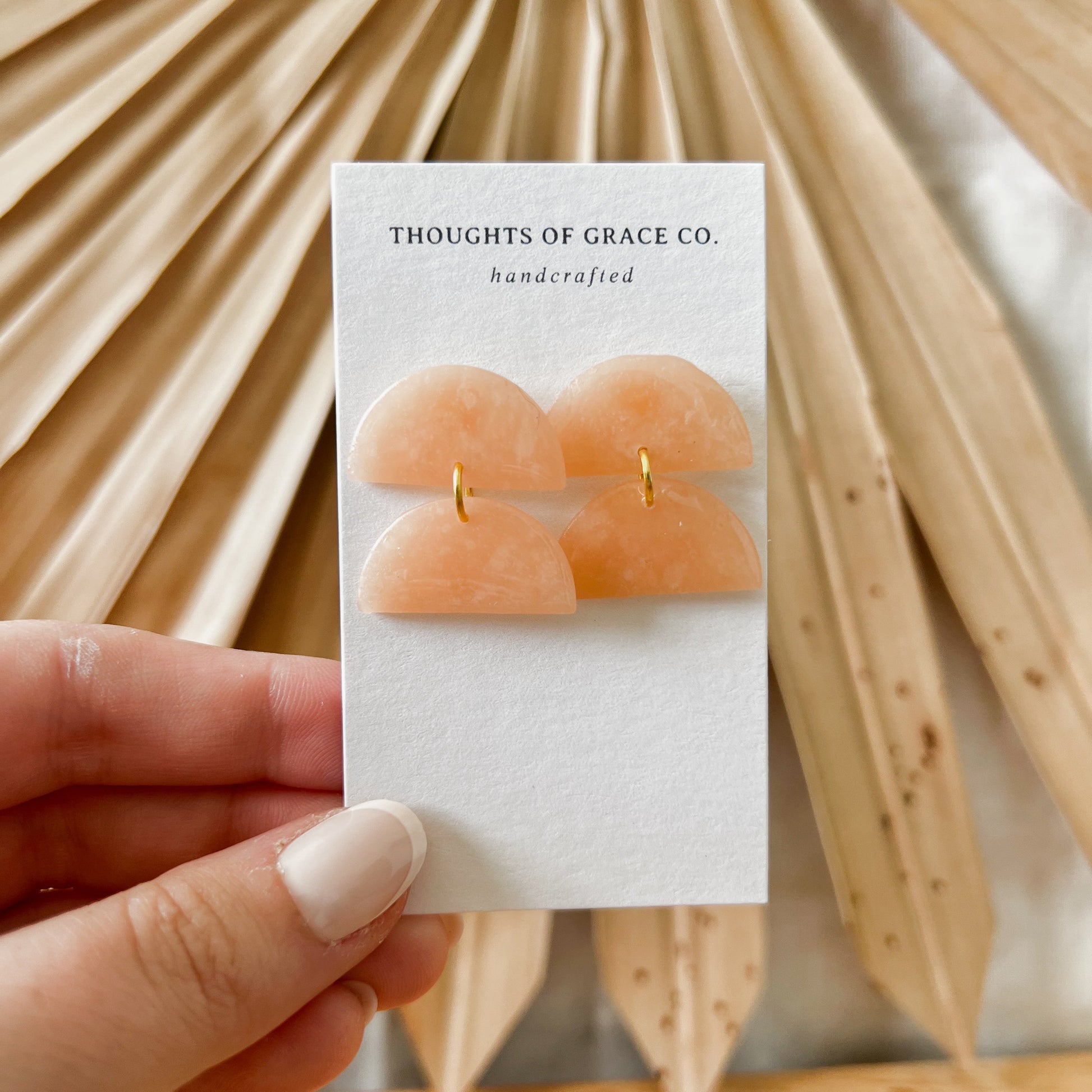Handmade in FL. Made with polymer clay and gold plated posts. Posts are hypoallergenic and nickel-free. Clay is lightweight and durable.